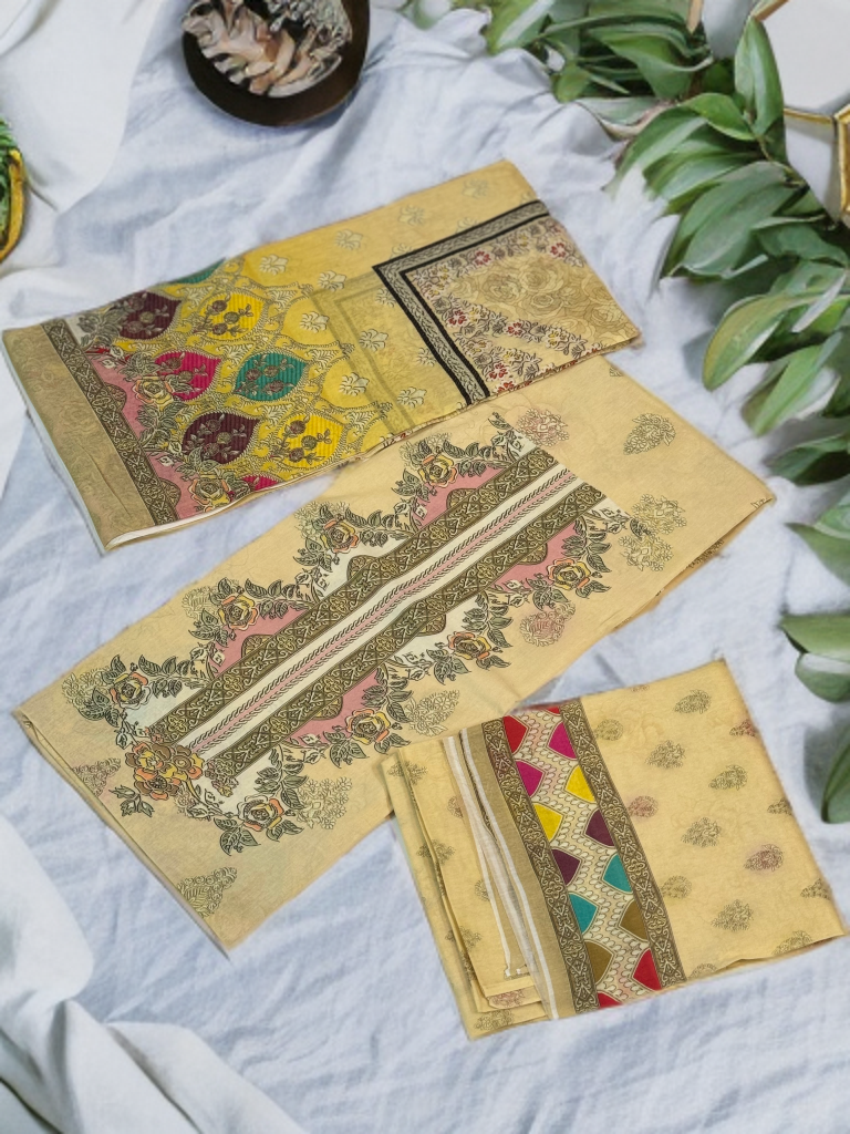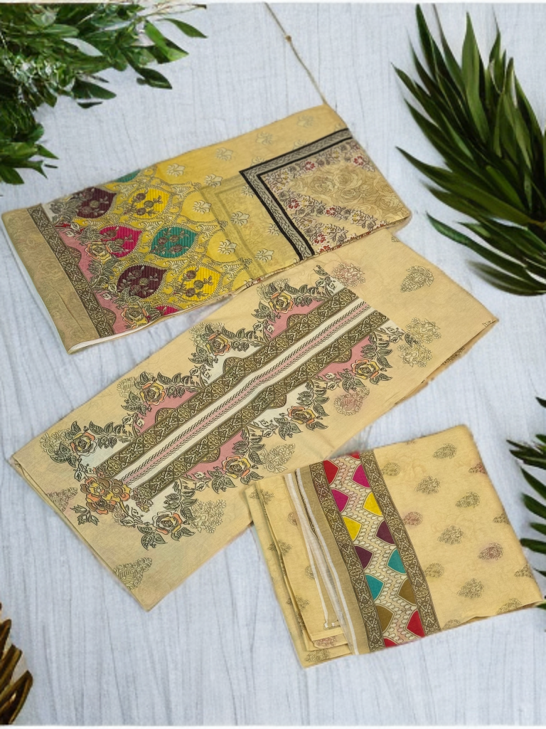 Discover the perfect blend of quality and style with this high-quality 300 gsm cotton unstiched printed salwar kameez. Crafted from premium breathable cotton, it promises comfort throughout the day while the vibrant tropical prints add a refreshing touch to your wardrobe. Ideal for customizing your ideal fit, this fabric invites you to create a unique, elegant outfit that stands out effortlessly. Elevate your traditional collection with fabric designed to impress.